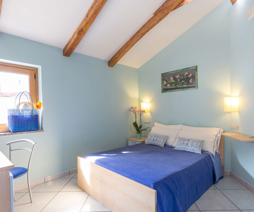 Fiordaliso è una sistemazione sui toni del blu caratterizzata dalla finestra ad oblò in camera e dal bagno privato con doccia e finestra. Ideale per le coppie che cercano una camera confortevole e senza rinunce. Camera di tipo Standard che può accogliere fino a due adulti in letto matrimoniale.